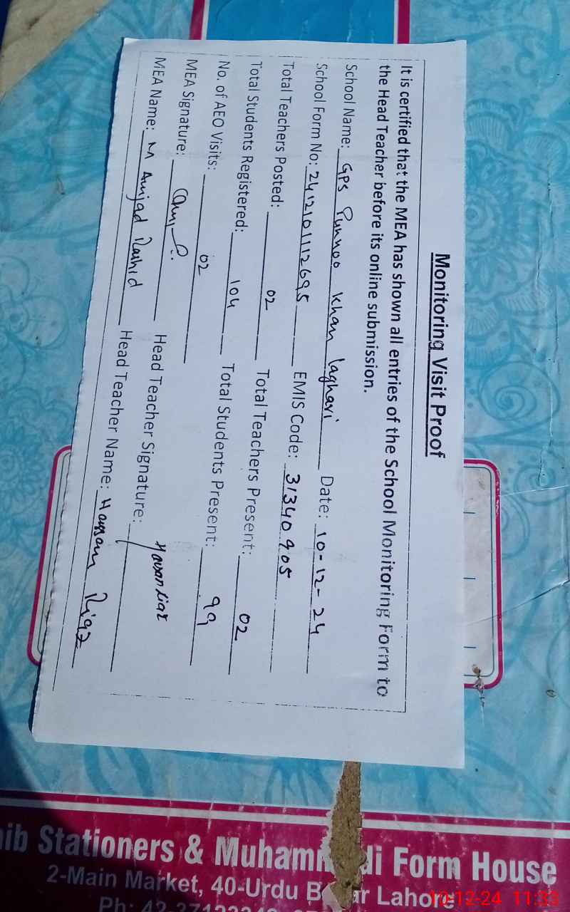 | EMIS Code: 31340905 | Name of School: GPS PUNOO KHAN LAGHARI | |||