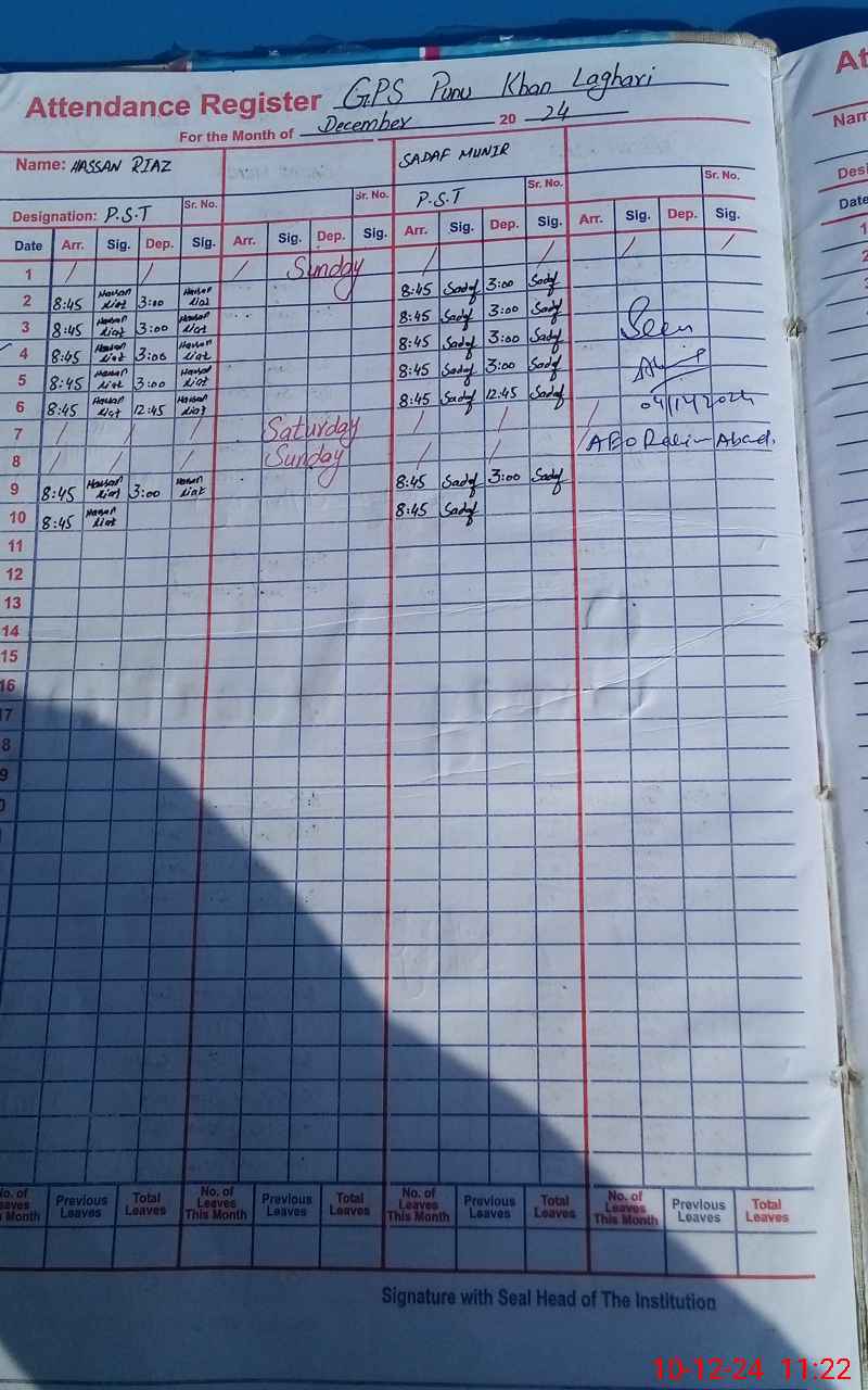 | Name: HA**** RI**** Designation: (School Headmaster's/Headmistress's) PST Phone/Cell Number: 03**** |