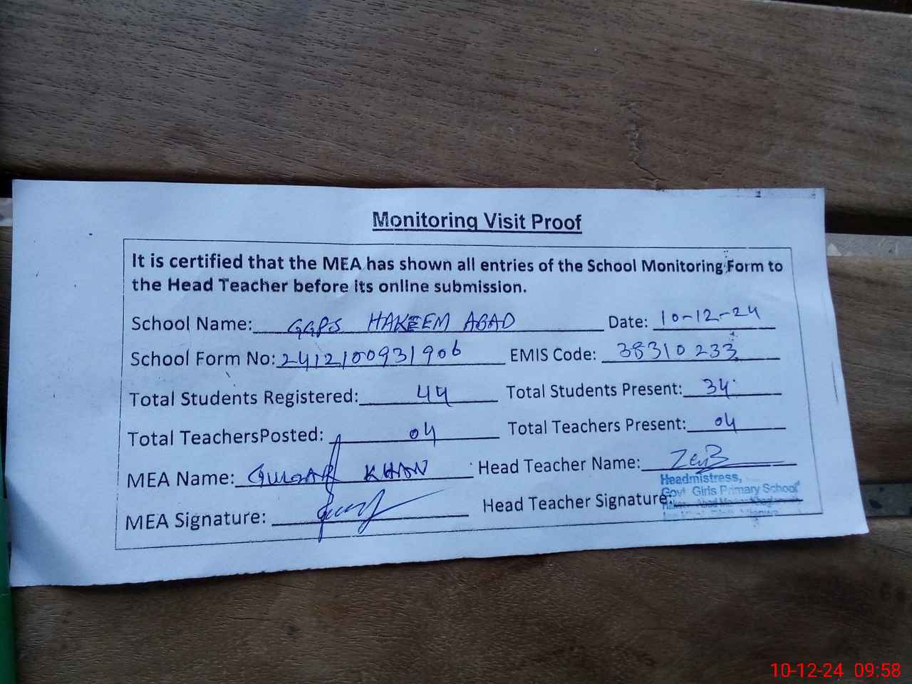 | EMIS Code: 38310233 | Name of School: GGPS HAKEEM ABAD | |||