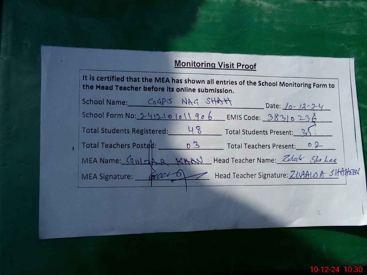 | EMIS Code: 38310236 | Name of School: GGPS NAG SHAH | |||