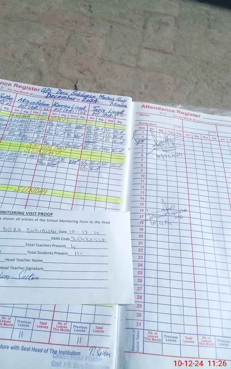 | EMIS Code: 35430550 | Name of School: GPS DERA SUBIDARAN | |||