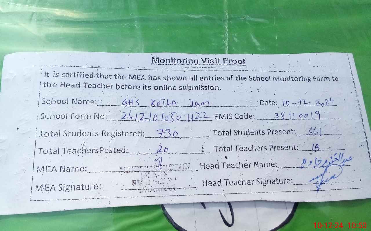 | EMIS Code: 38110019 | Name of School: GHS KOTLA JAM | |||