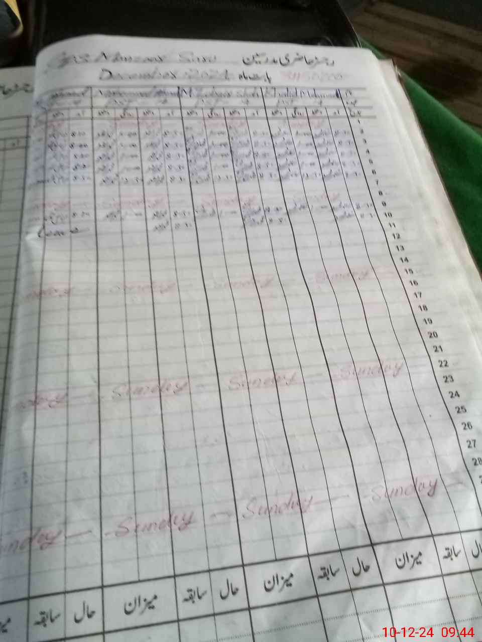 | CNIC | Full Name | Designation | R/C | Absence During Last Calender Month |