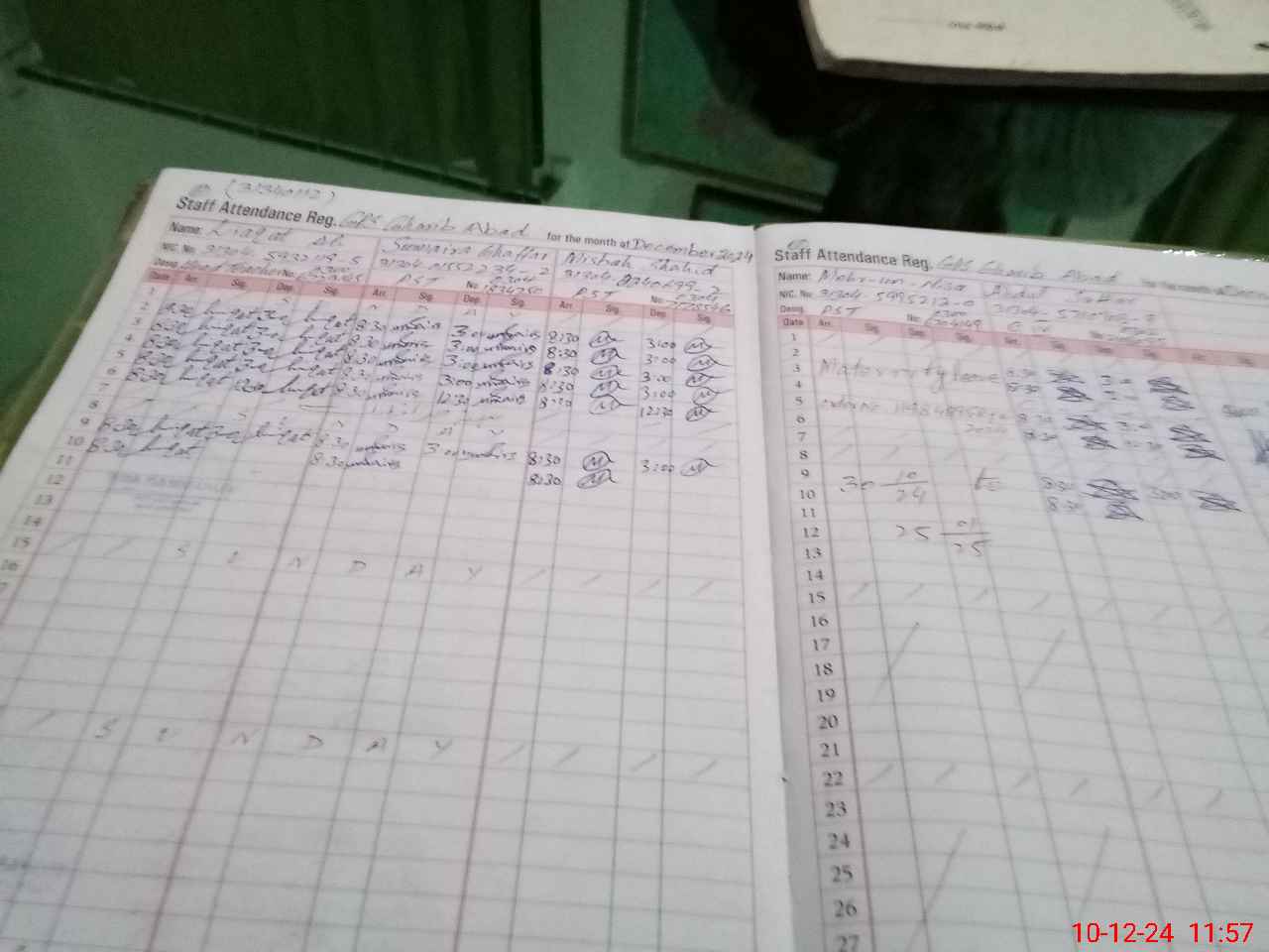 | CNIC | Full Name | Designation | R/C | Absence During Last Calender Month |
