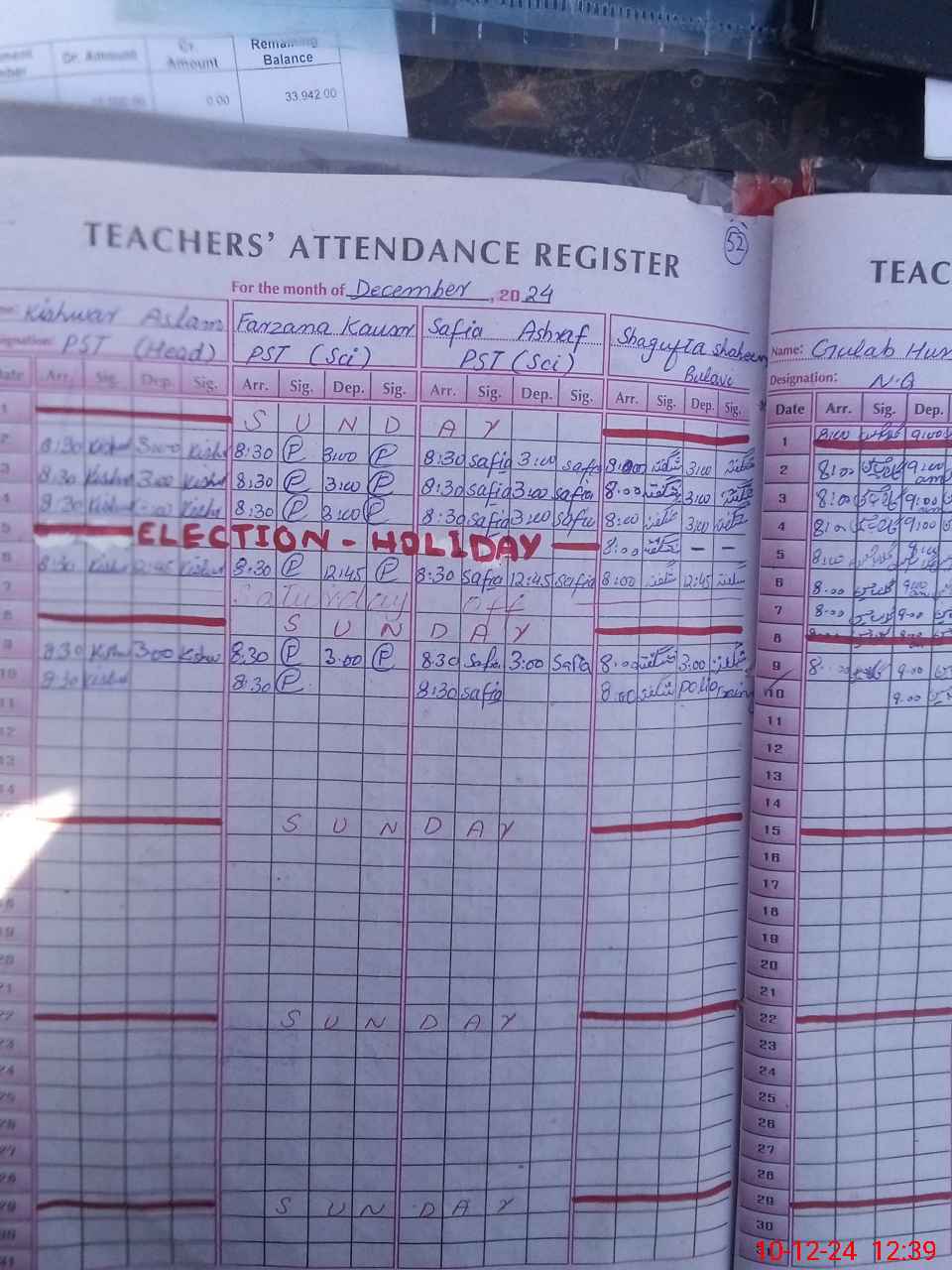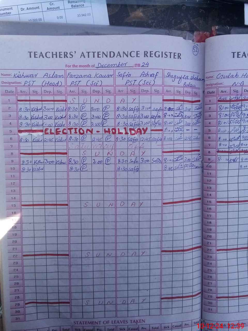 | CNIC | Full Name | Designation | R/C | Absence During Last Calender Month |