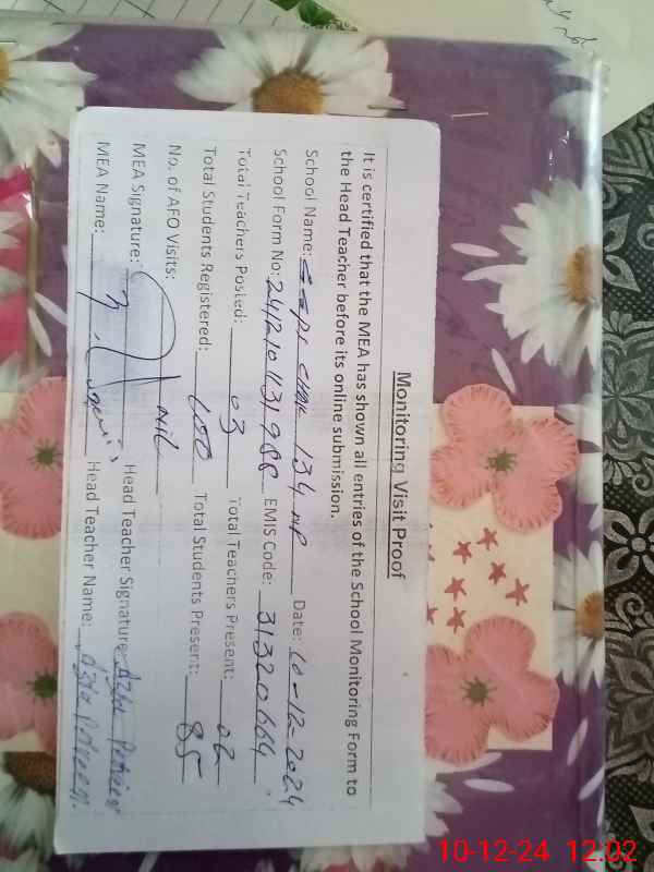 | EMIS Code: 31320664 | Name of School: GGPS CHAK 134/NP | |||