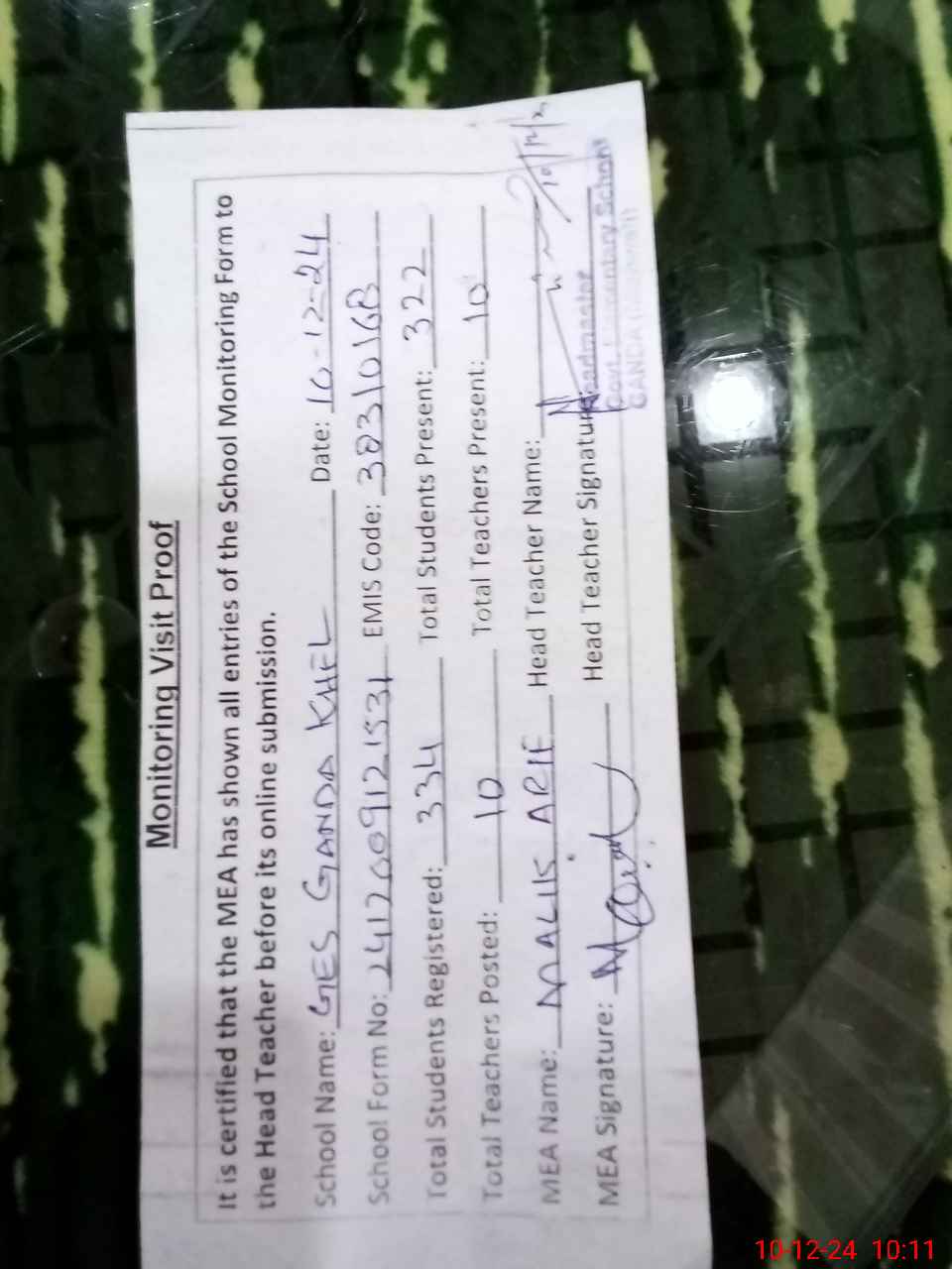 | EMIS Code: 38310168 | Name of School: GHS GANDA KHEL | |||