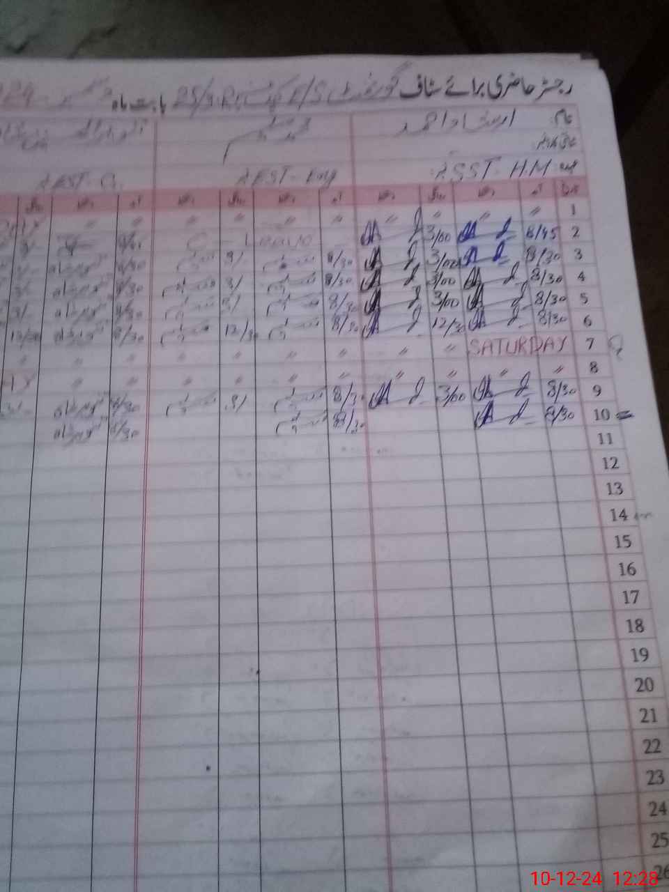 | CNIC | Full Name | Designation | R/C | Absence During Last Calender Month |