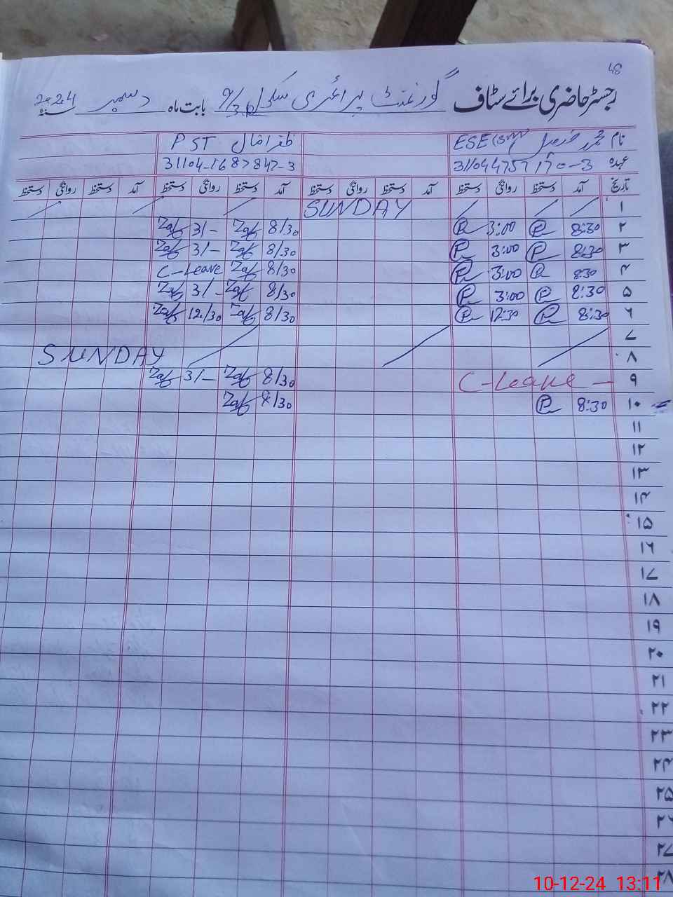 | 31**** | Gh**** Ah**** | PST | Regular | 1 | 0 | 0 | 0 | 0 | 0 | 0 | 0 | 1 | Casual |