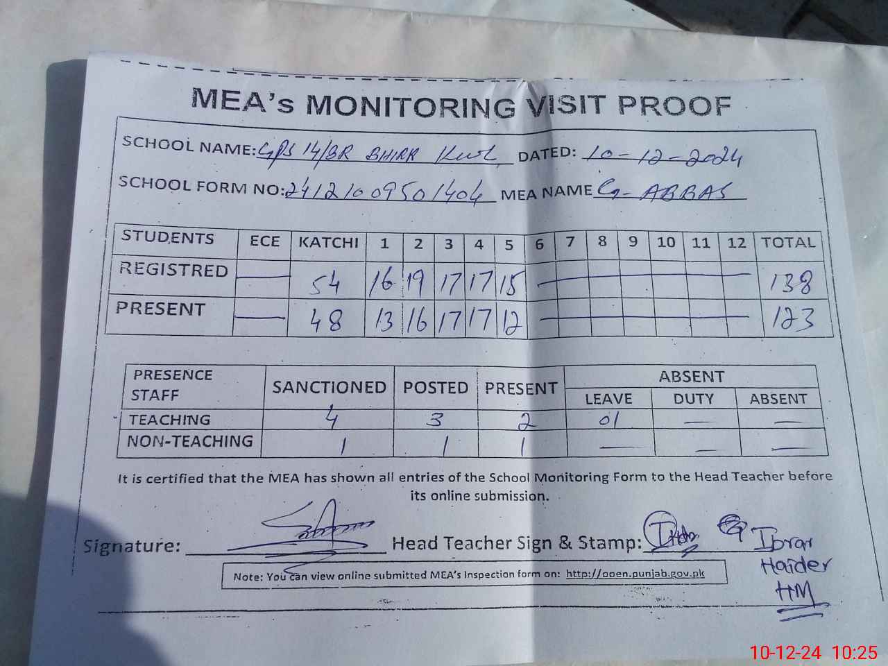 | EMIS Code: 36420602 | Name of School: GPS 14/8-R BHIR, KACHA KHUH | |||