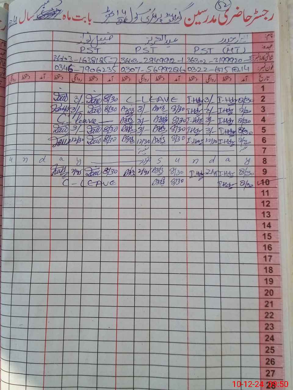 | 36**** | Fa**** Na**** | PST | Regular | 3 | 0 | 0 | 0 | 0 | 0 | 0 | 0 | 3 | Casual |
