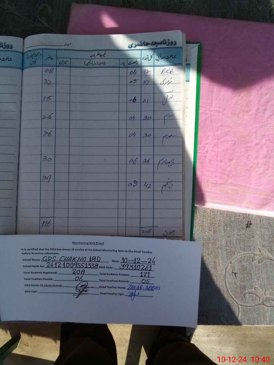 | EMIS Code: 39310261 | Name of School: GPS CHAK NO.18-D | |||