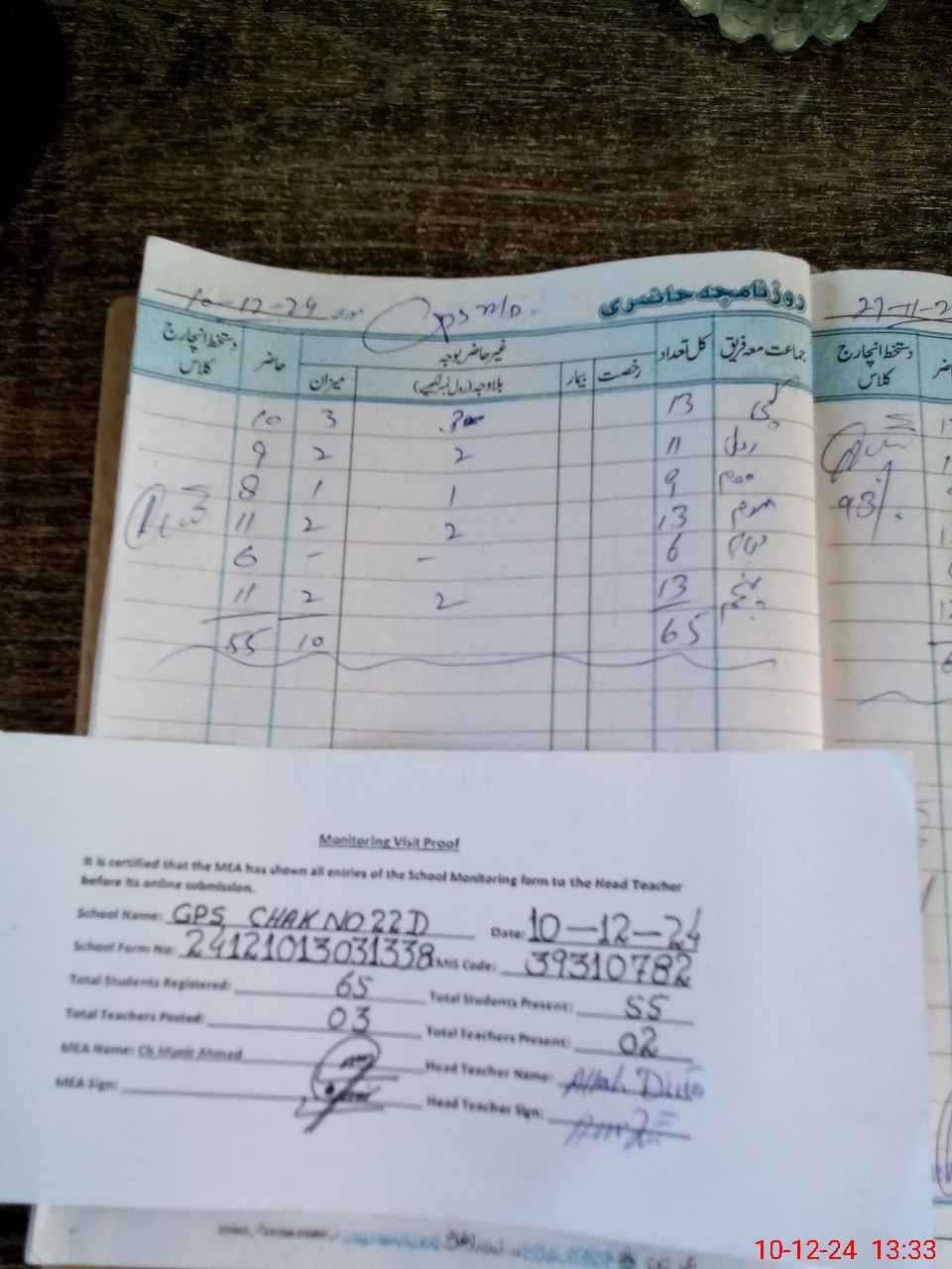 | EMIS Code: 39310782 | Name of School: GPS CHAK NO. 22/D | |||