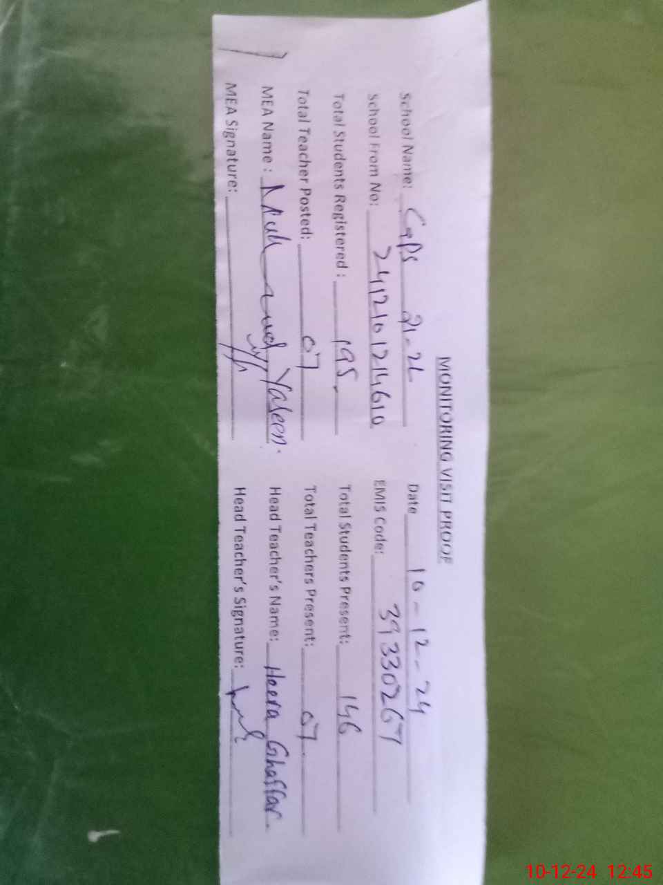| EMIS Code: 39330267 | Name of School: GPS CHAK 21 2L | |||
