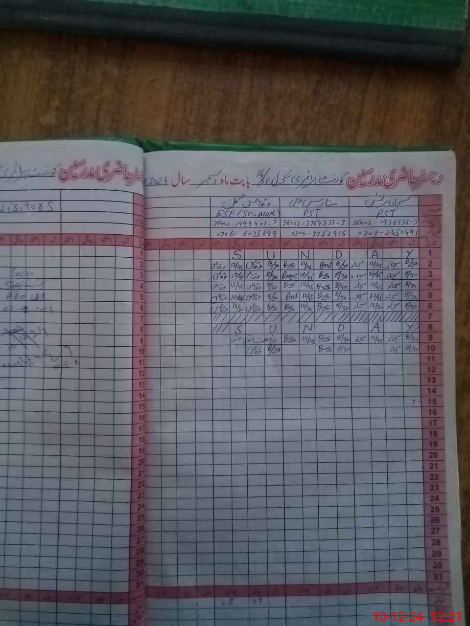 | Name: SA**** URRE**** Designation: (School Headmaster's/Headmistress's) PST Phone/Cell Number: 03**** |