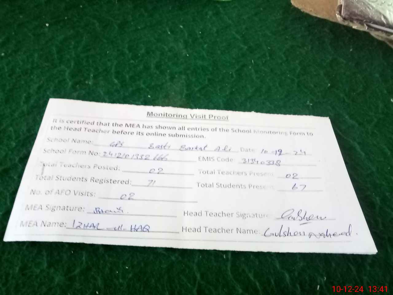 | EMIS Code: 31340338 | Name of School: GPS BASTI BARKAT ALI | |||