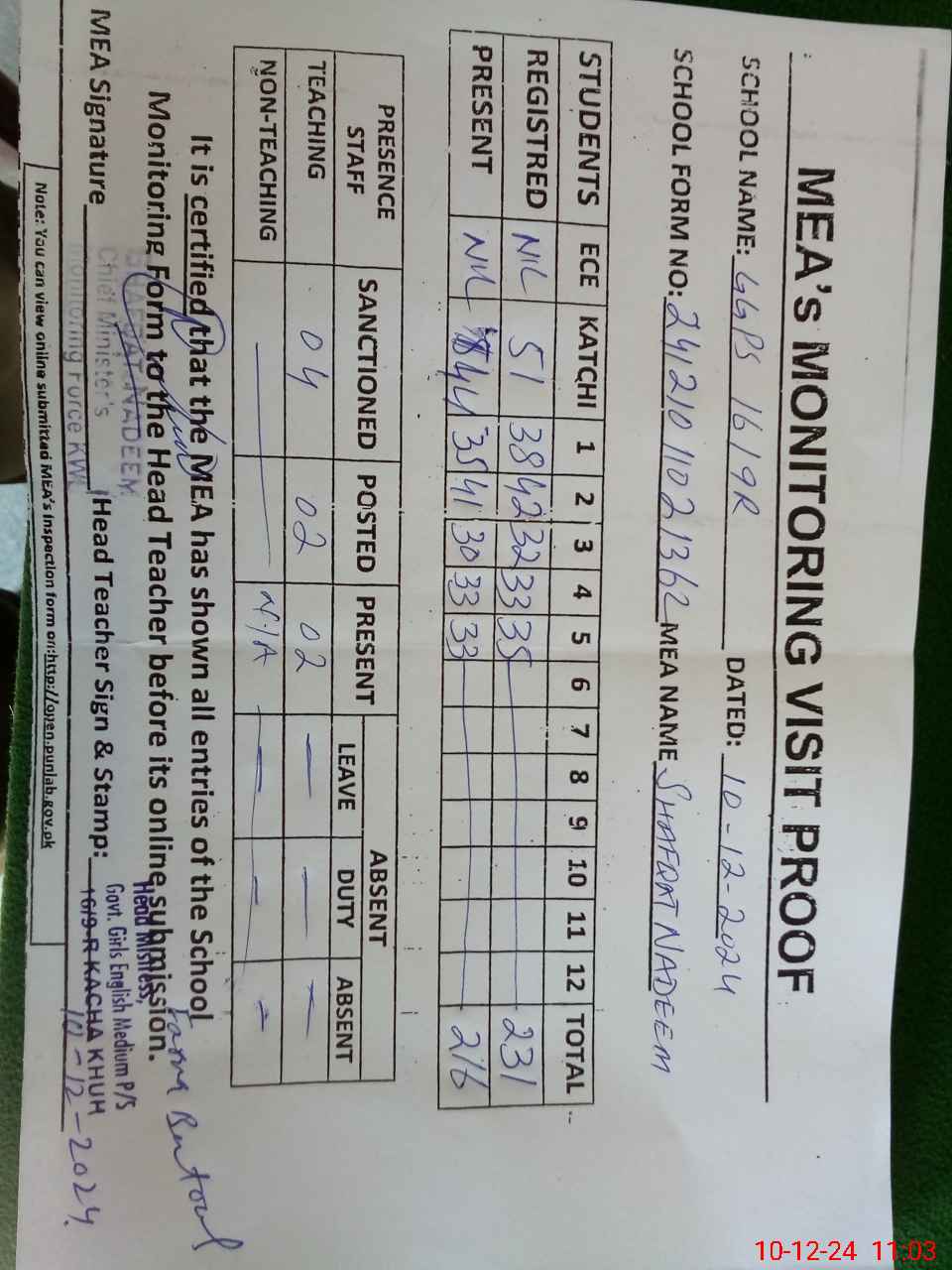 | EMIS Code: 36420463 | Name of School: GGPS 16/9-R, KACHA KHUH | |||