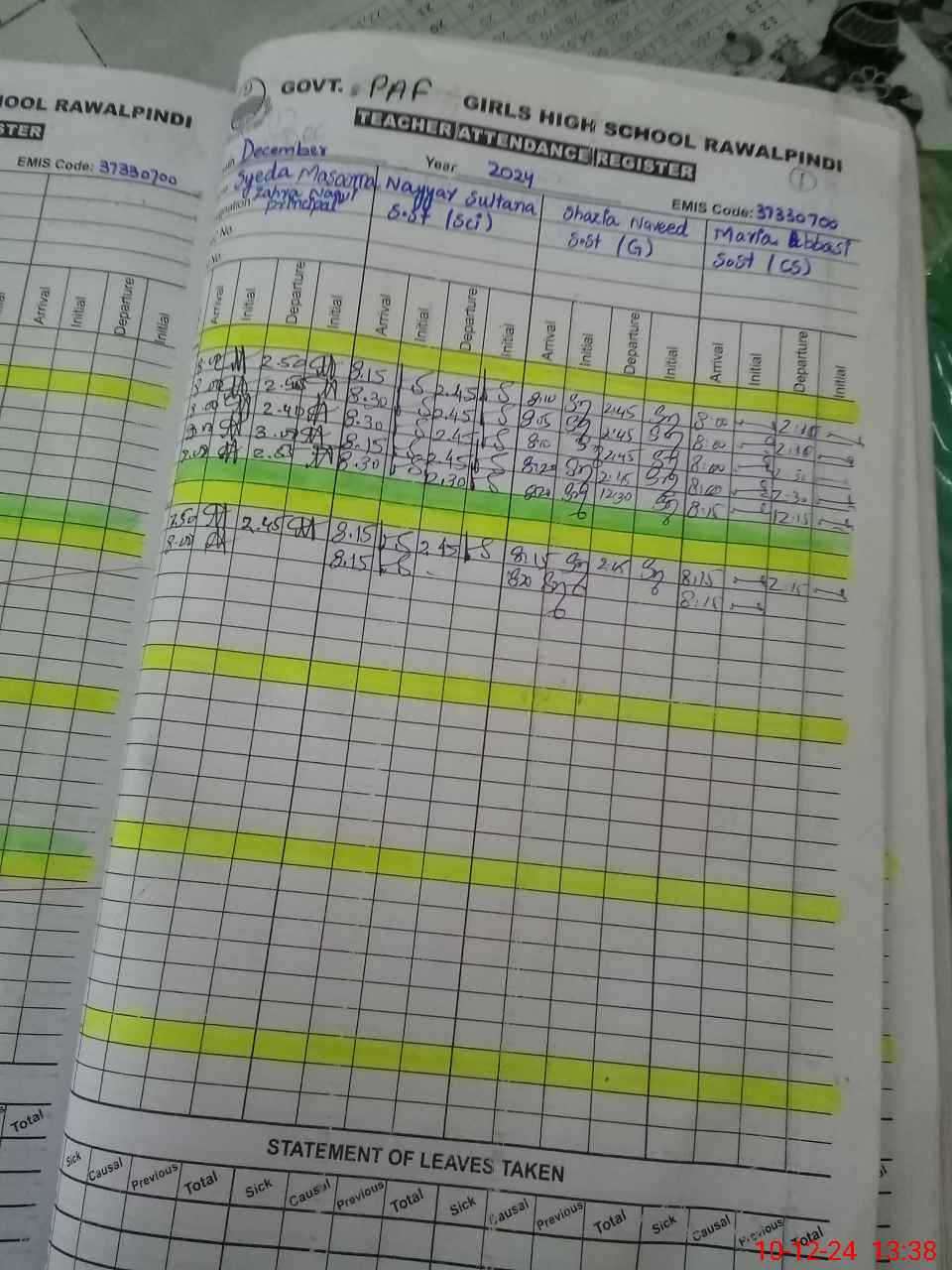 | EMIS Code: 37330700 | Name of School: GGHS PAF BASE CHAKLALA | |||