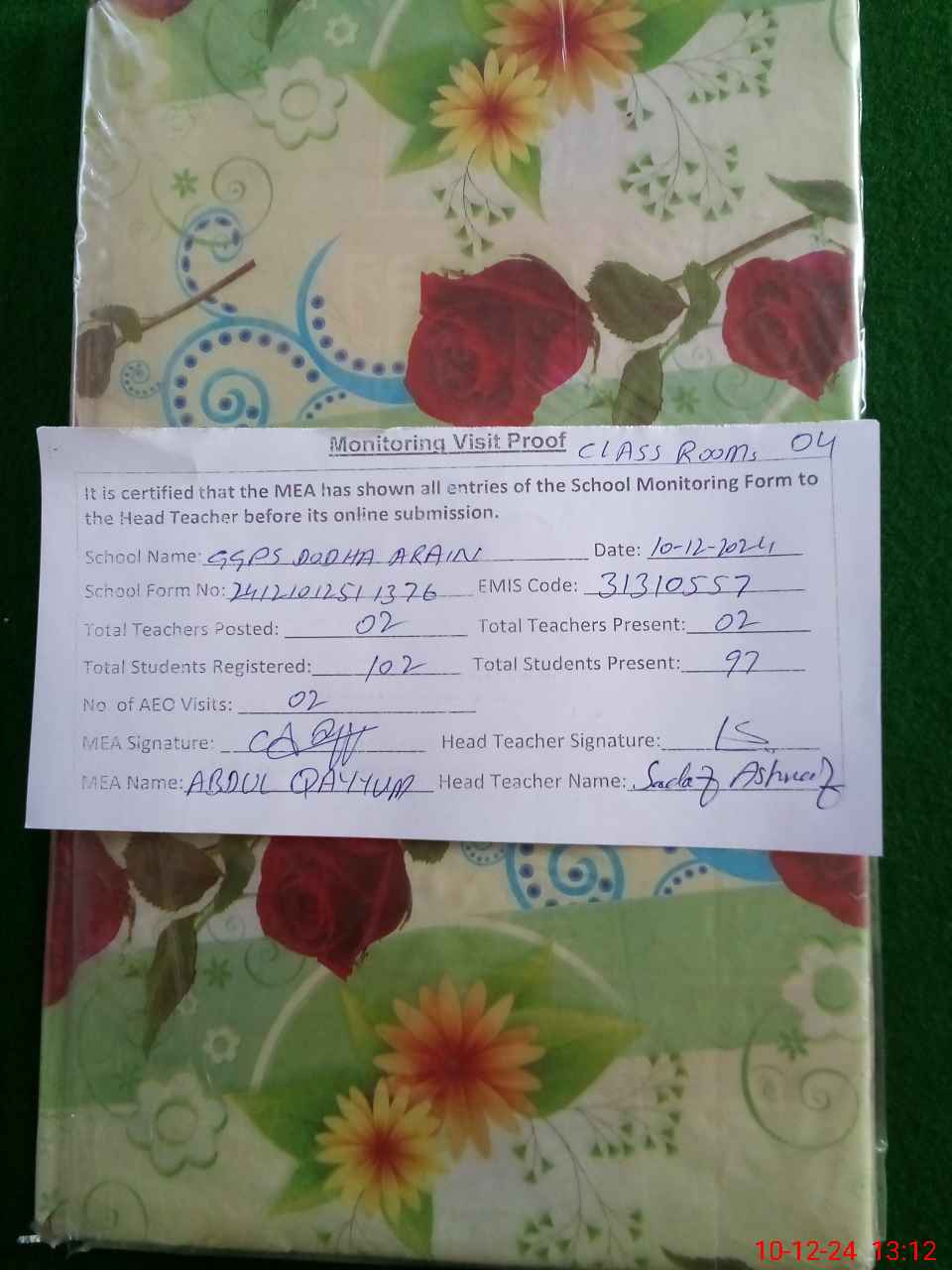 | EMIS Code: 31310557 | Name of School: GGPS DODAH ARIAN | |||