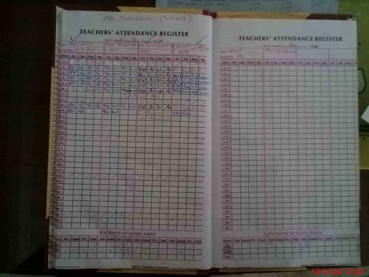 | Name: AB**** RA**** GH**** Designation: (School Headmaster's/Headmistress's) PST Phone/Cell Number: 03**** |