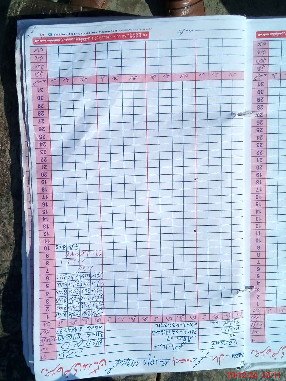 | CNIC | Full Name | Designation | R/C | Absence During Last Calender Month |