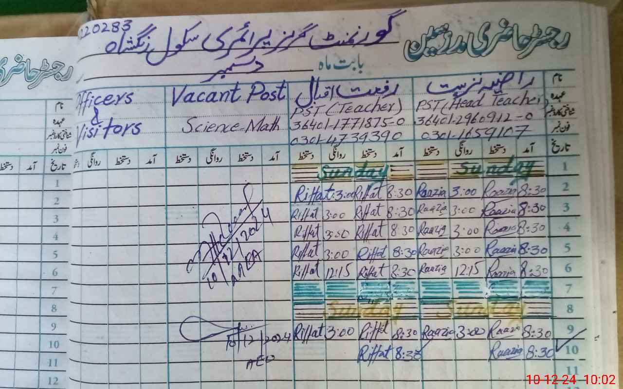 | Name: RA**** NU**** Designation: (School Headmaster's/Headmistress's) PST Phone/Cell Number: 03**** |