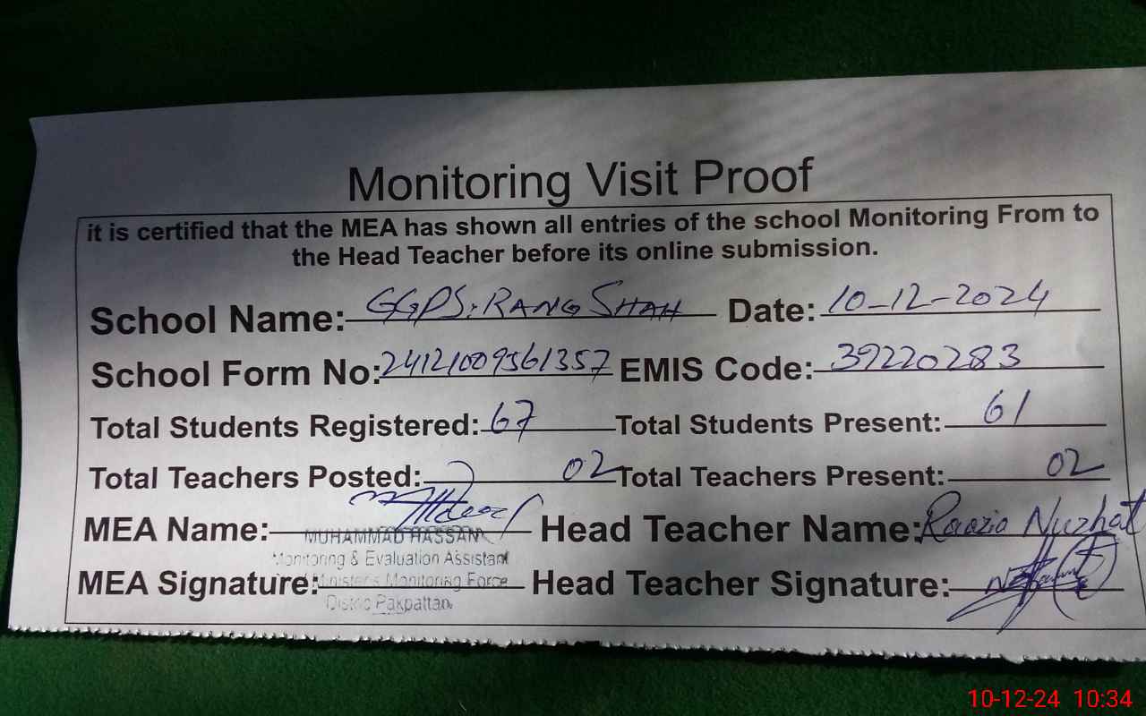 | EMIS Code: 39220283 | Name of School: GGPS RANG SHAH | |||