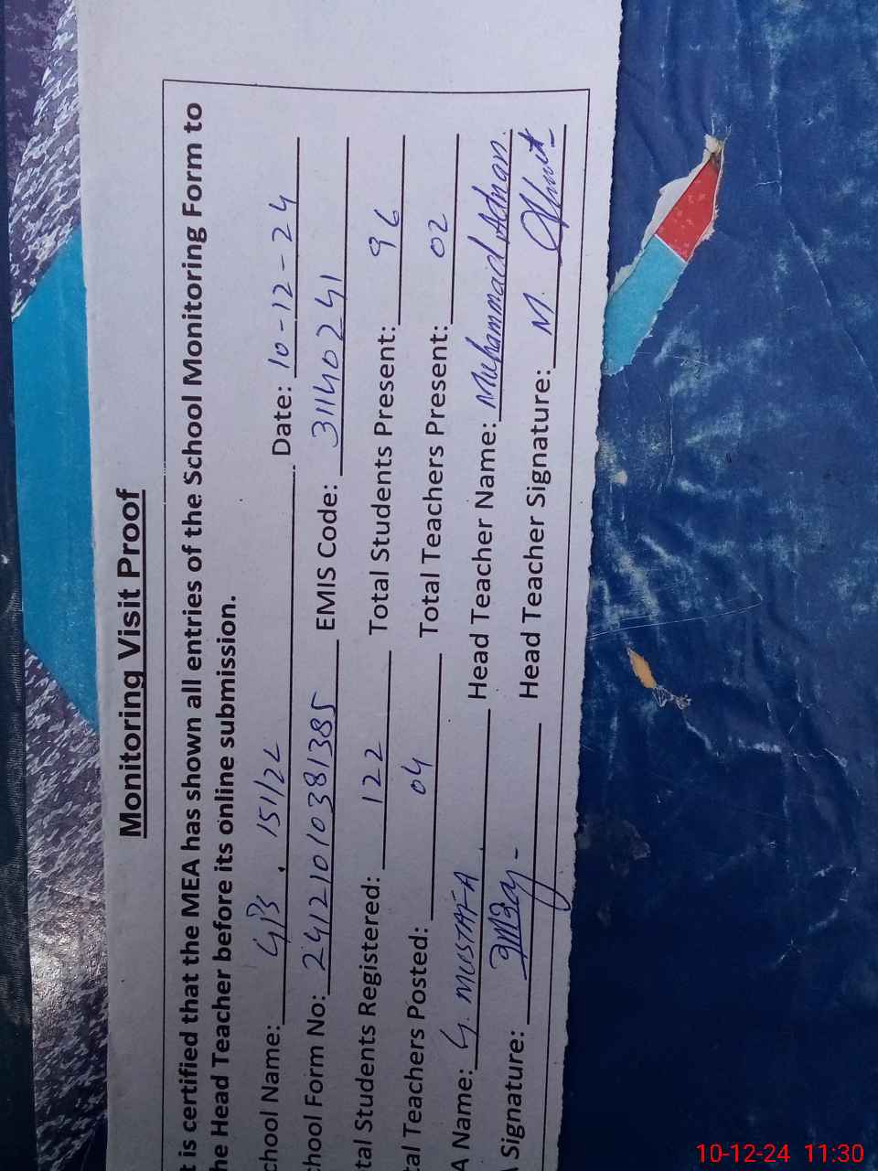 | Certified that this School was Inspected by the Undersigned MEA/DMO Today and the Information Stated Above is as Per Record. | |||||