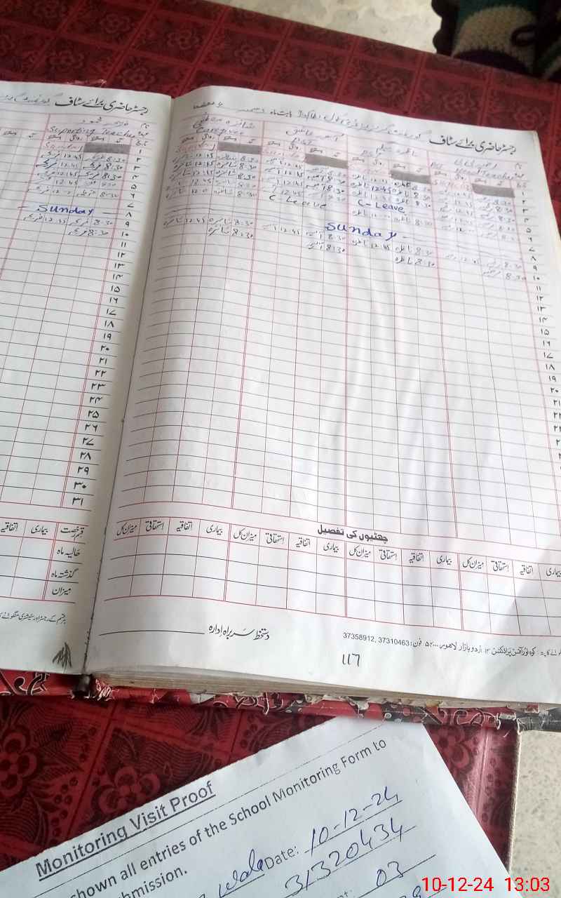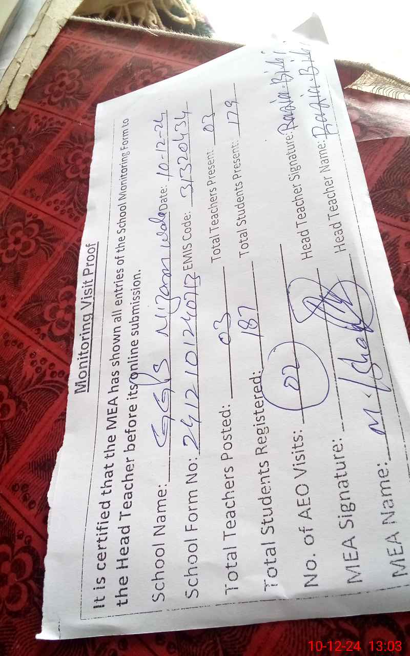 | Attendance Register | Head Teacher | MEA with School | Visit Proof |