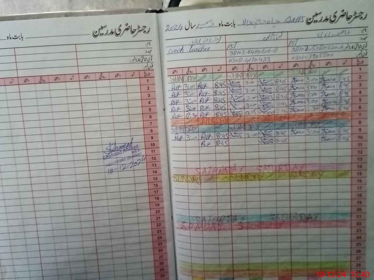 | Name: As**** BiBi Designation: (School Headmaster's/Headmistress's) PST Phone/Cell Number: 03**** |