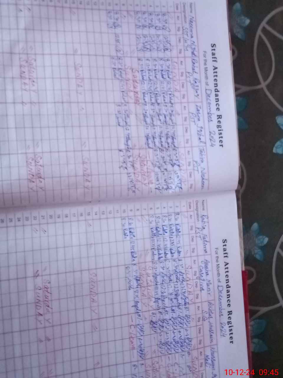 | CNIC | Full Name | Designation | R/C | Absence During Last Calender Month |