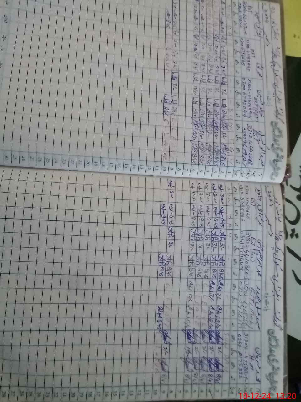 | CNIC | Full Name | Designation | R/C | Absence during last cal. month |