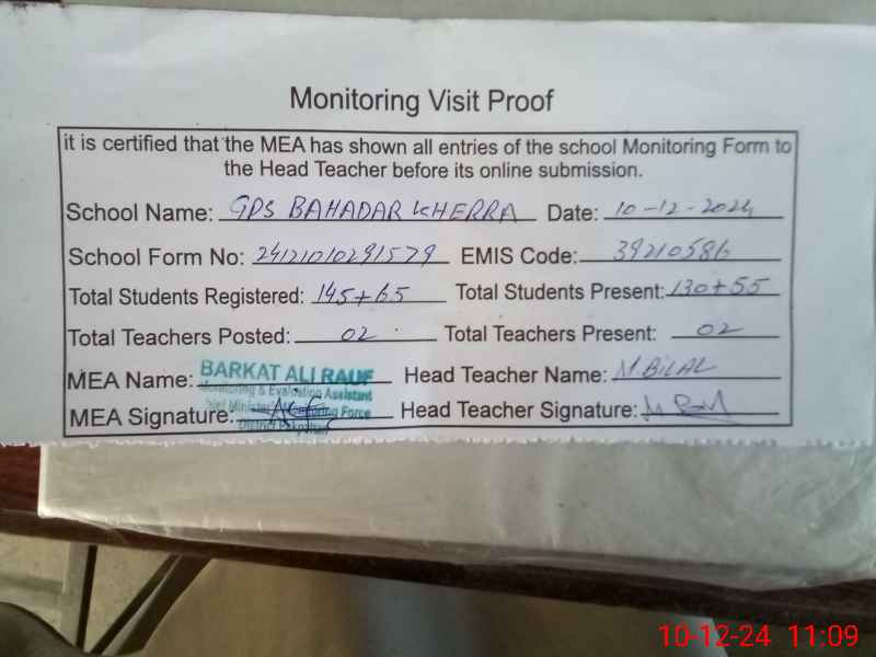| EMIS Code: 39210586 | Name of School: GPS BAHADUR KHERRA | |||