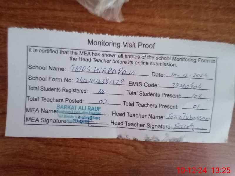| EMIS Code: 39210404 | Name of School: GMPS KIRPARAM | |||