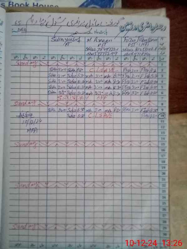 | CNIC | Full Name | Designation | R/C | Absence During Last Calender Month |
