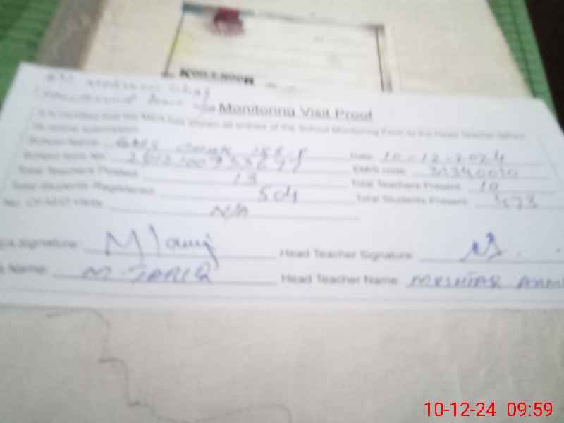 | Attendance Register | Head Teacher | MEA with School | Visit Proof |