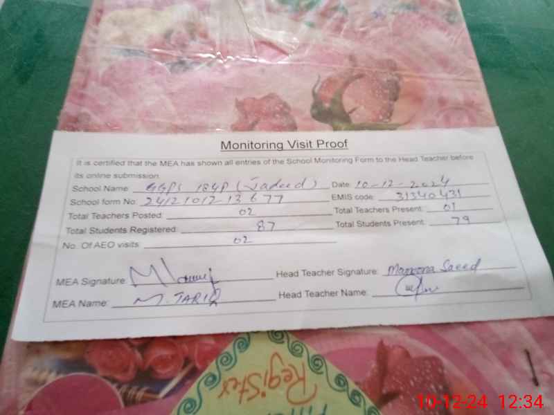 | EMIS Code: 31340431 | Name of School: GGPS CHAK NO 184/P JADEED | |||