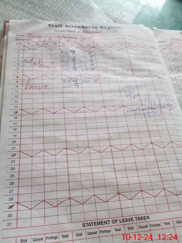 | 31**** | Sa**** Am**** | 1 | 24 | 0 | 0 | 18 | 0 | 0 | 0 | 0 | 6 | Maternity | |