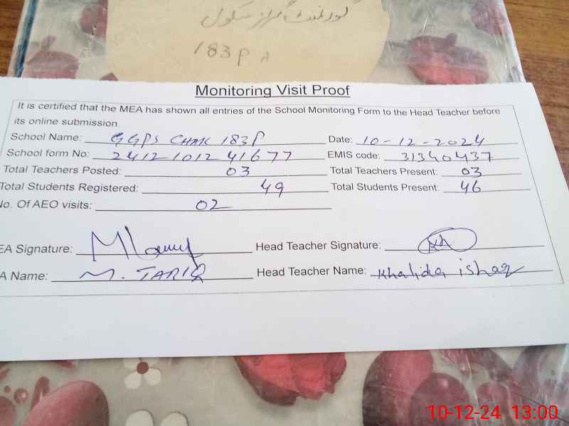 | EMIS Code: 31340437 | Name of School: GGPS 183/P | |||