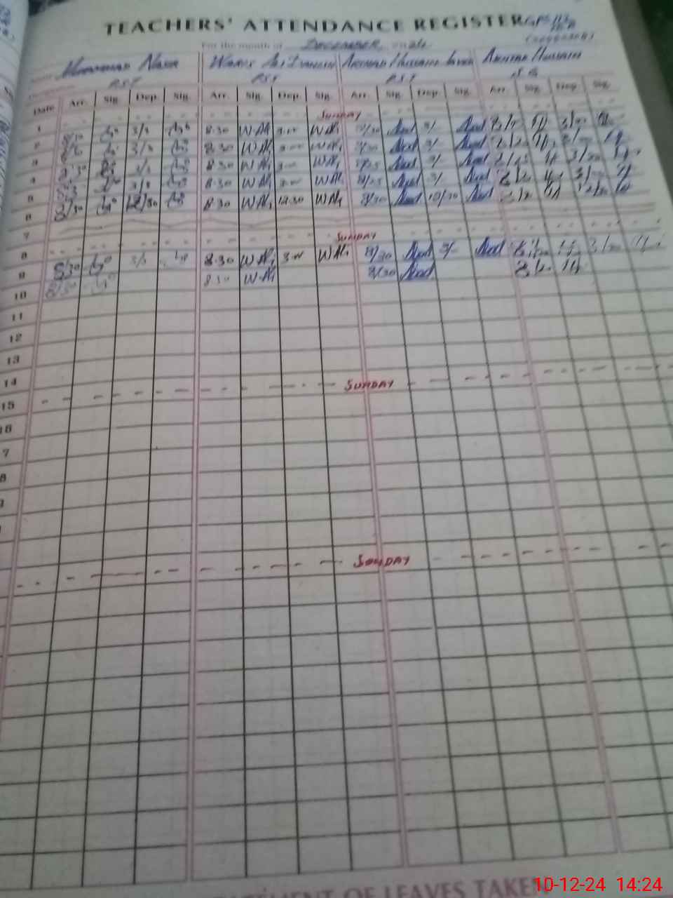 | CNIC | Full Name | Designation | R/C | Absence During Last Calender Month |