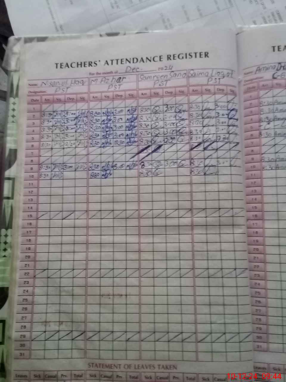 | Leave | Duty | Absent | Maternity | Medical | Ex- Pak |
