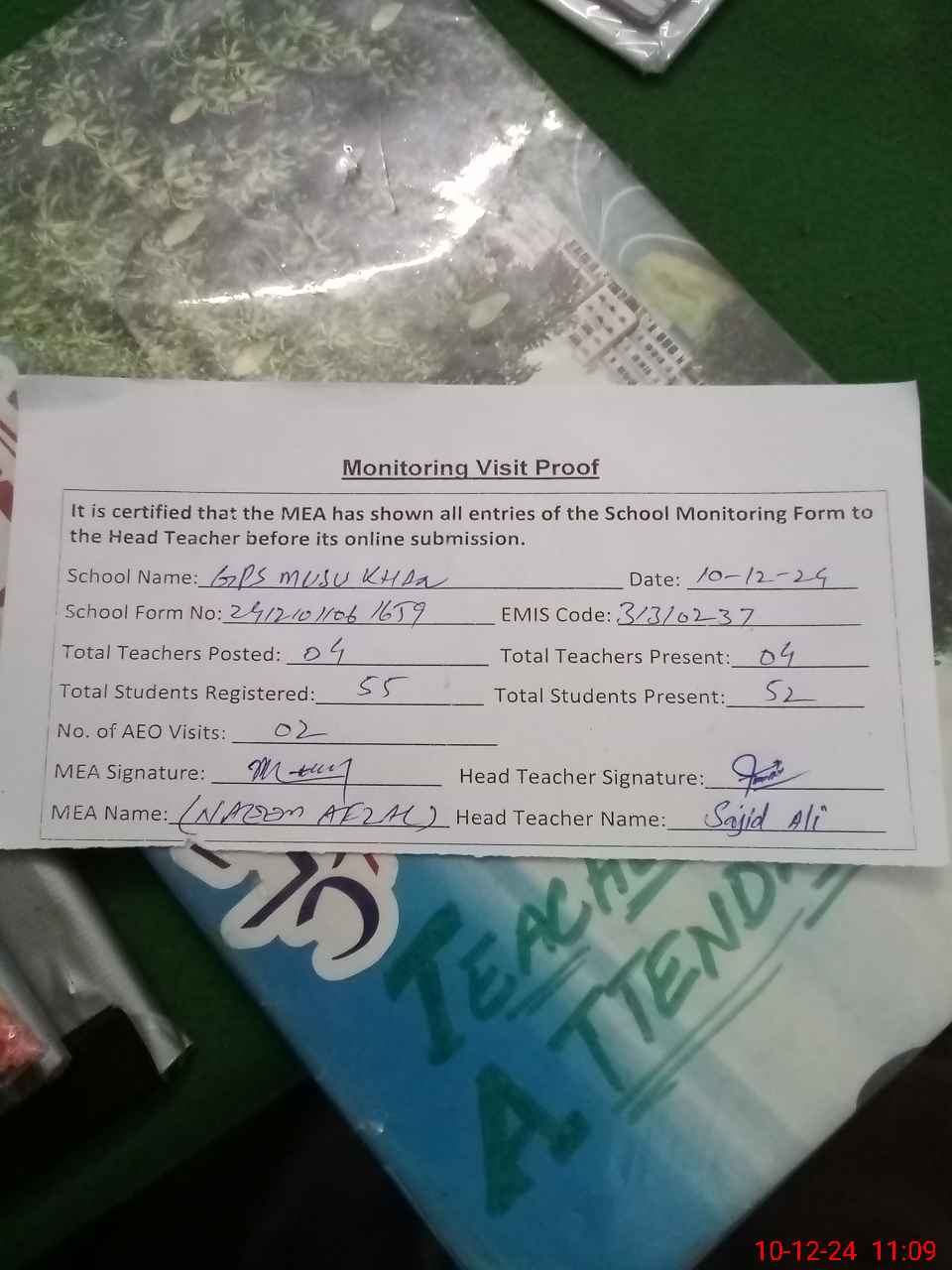 | EMIS Code: 31310237 | Name of School: GPS MUSU KHAN | |||