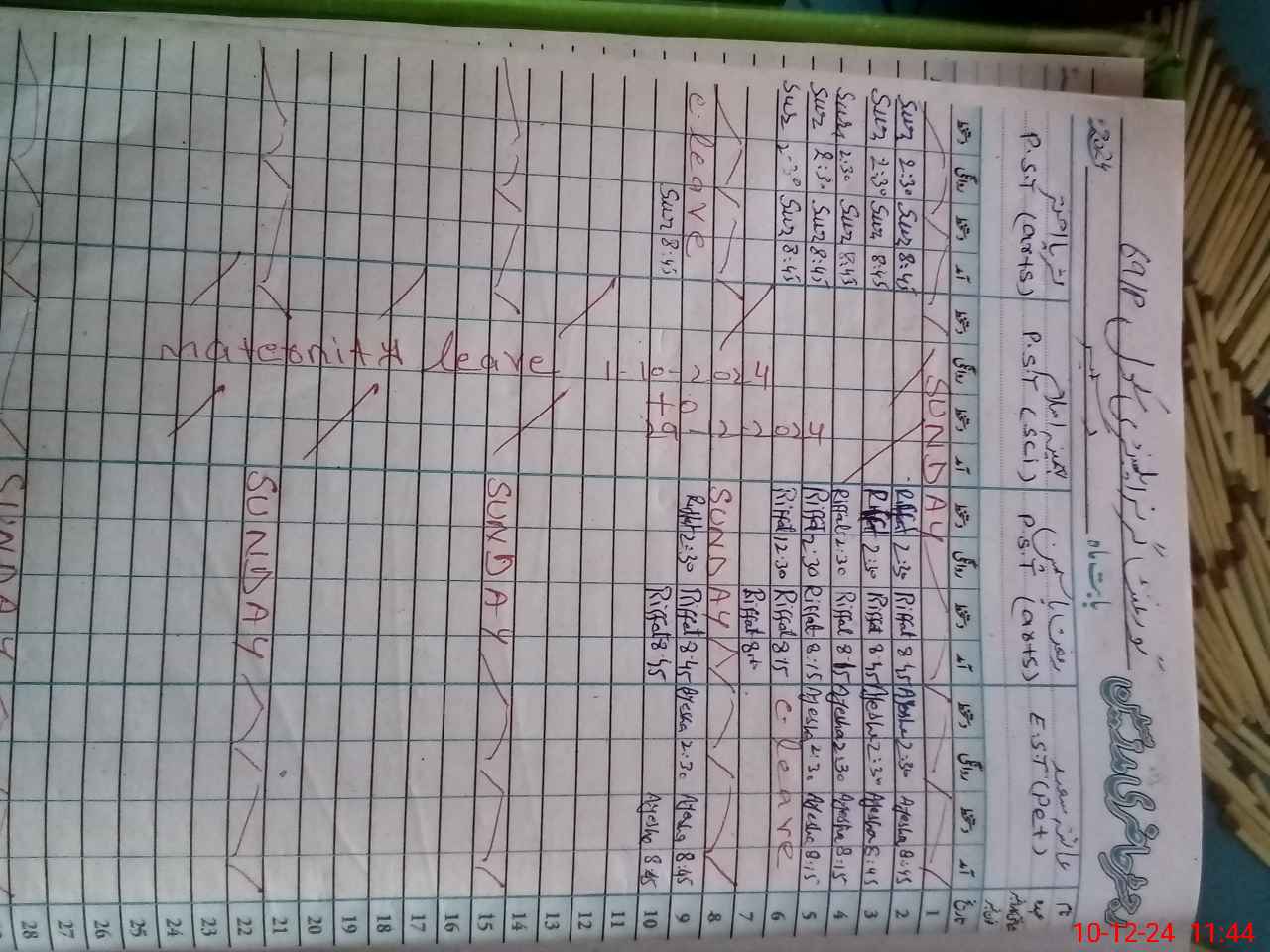 | Leave | Duty | Absent | Maternity | Medical | Ex- Pak |