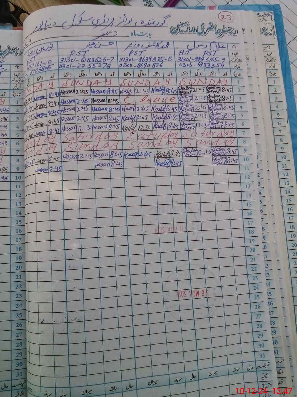 | Name: Gh**** Ra**** Designation: (School Headmaster's/Headmistress's) PST Phone/Cell Number: 03**** |
