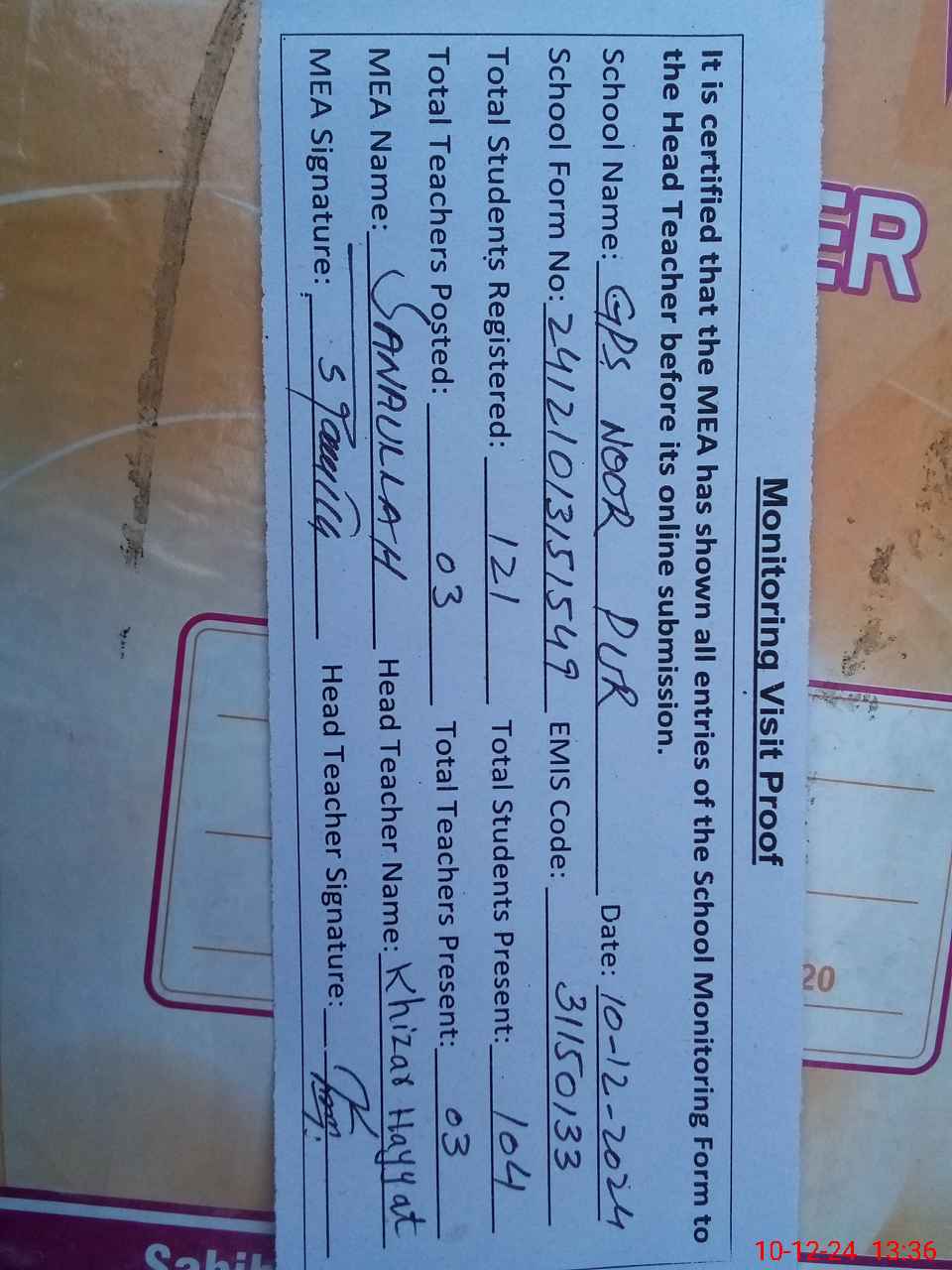 | EMIS Code: 31150133 | Name of School: GPS NOOR PUR | |||
