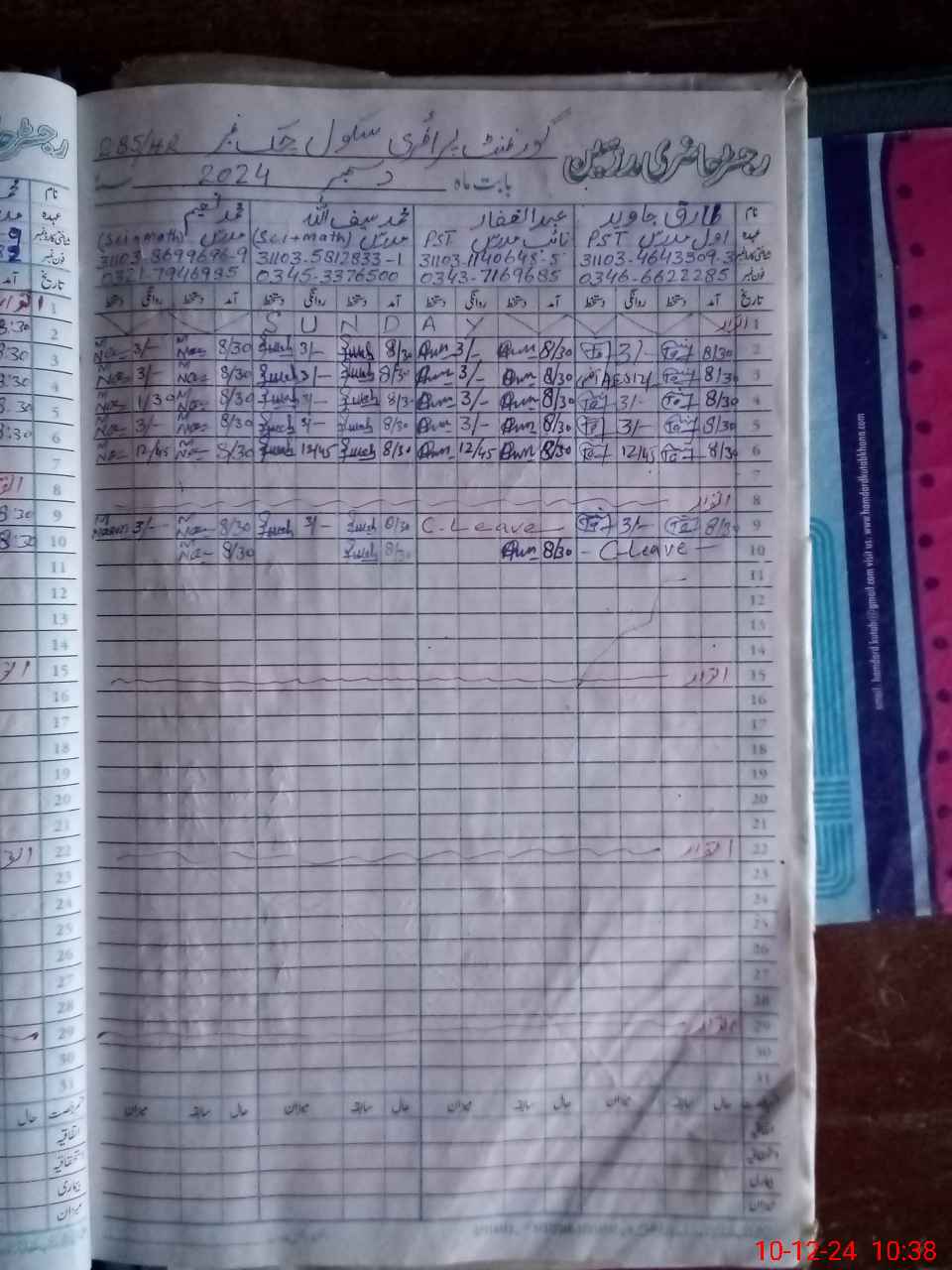 | CNIC | Full Name | Designation | R/C | Absence During Last Calender Month |