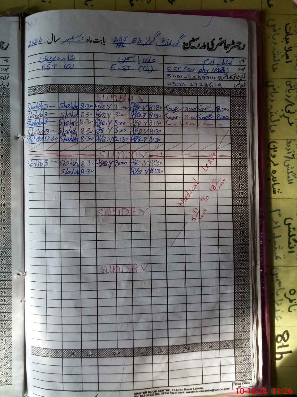 | Leave | Duty | Absent | Maternity | Medical | Ex- Pak |