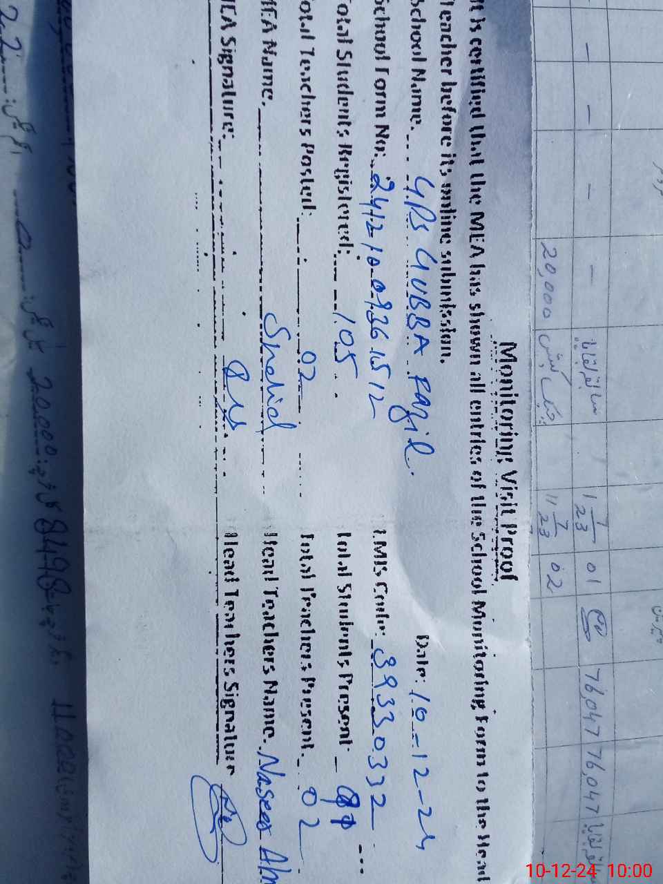 | EMIS Code: 39330332 | Name of School: GPS GUBBA FAZIL | |||