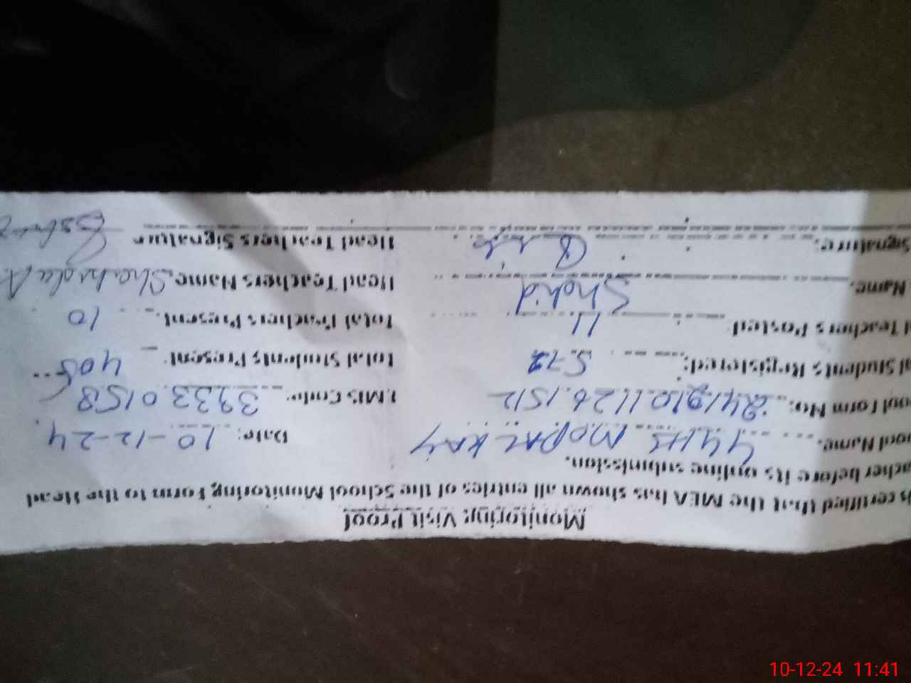 | Monitoring Date: 10-12-2024 | Start Time: 10-12-2024 11:26 AM | End Time: 10-12-2024 11:42 AM | Name of MEA: SH**** YO**** | |