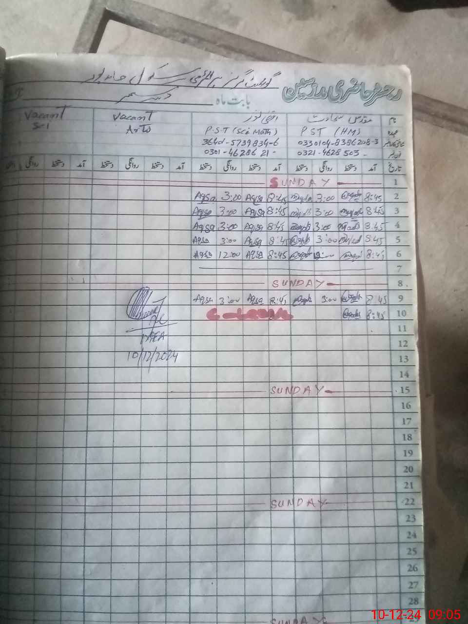 | Name: MU**** SA**** Designation: (School Headmaster's/Headmistress's) PST Phone/Cell Number: 03**** |